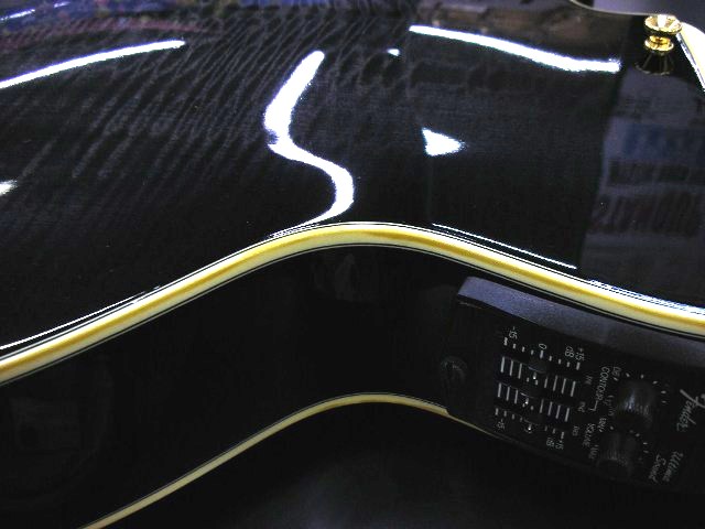 ストラトヘッド、ダブル・カッタウェイ、エルボーコンター、サイドジャックなどエレクトリック・ギター ユーザーのかゆい所に手の届く使用が♪Liveの楽器持ち替え時に違和感軽減!傷も少なくバインディング焼けはありますがコンディションはB+!